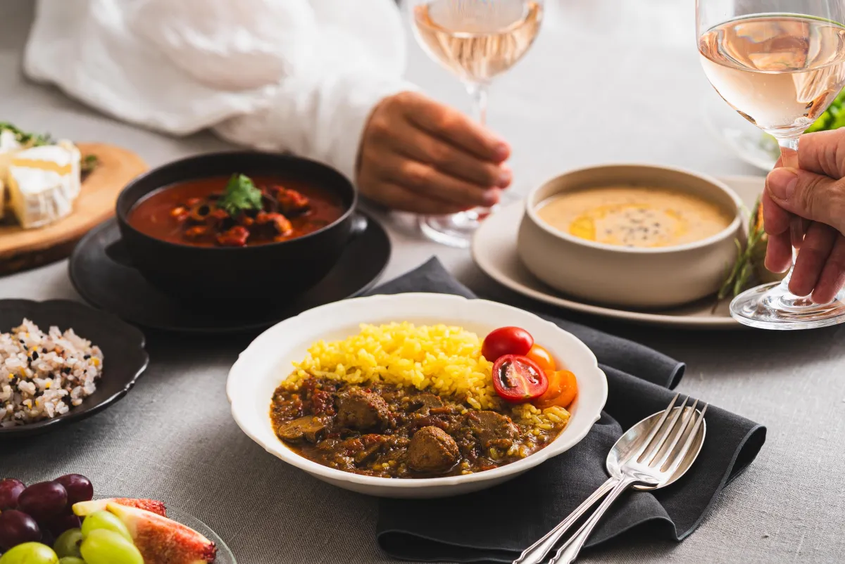 熟したトマトの旨みと牛肉の風味、さらにブラックオリーブが香りを引き立てています。辛さとコクが絶妙にマッチしており、大人にぴったりな一品です。