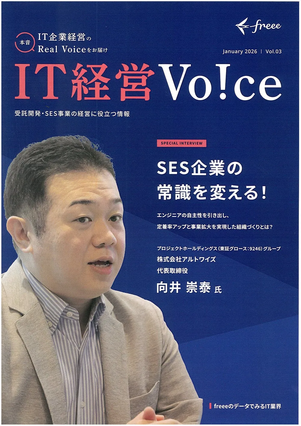 株式会社プロジェクトホールディングスの子会社、アルトワイズが、freeeが刊行する経営者向け冊子『IT経営Voice vol.3』に取り上げられました。今回の特集では、アルトワイズが実施してきた組織改革の取り組みや、その成果が詳しく紹介されています。