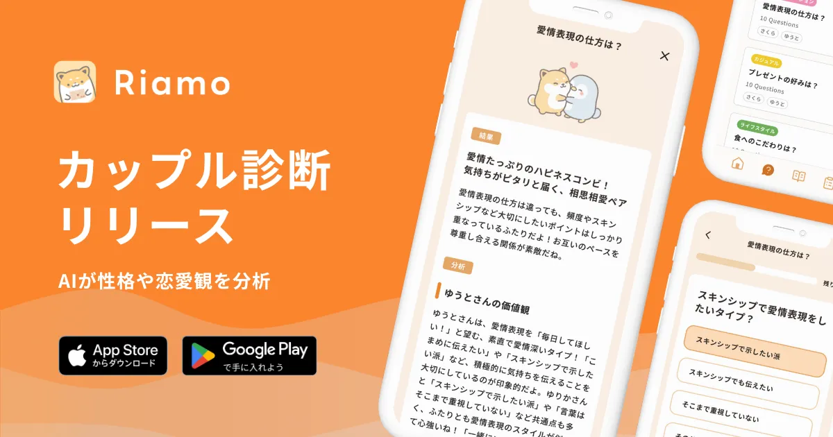 カップル向けアプリ「Riamo」は、AIを活用した新たな機能「カップル診断」をリリースしました。この診断は、カップルが互いの性格や恋愛観を理解するための大きな手助けとなることでしょう。特に、日常の中で感じられるすれ違いやトラブルの原因を探るのに役立ちます。