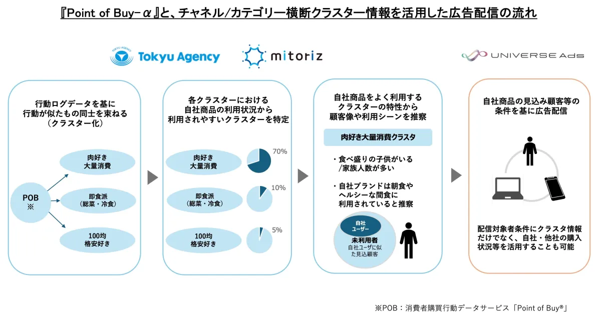 今回の取り組みは、東急エージェンシーとmitorizの共同開発によるマーケティングダッシュボード『Point of Buy-α』と、東急エージェンシーによる「Target Finder®」を融合させ、ユーザーの購買行動に基づいたデータを広告配信に役立てるものです。これにより、企業はUNIVERSE Adsを利用して特定の商品やカテゴリーに関連する購買行動を持つユーザーに対して、より的確な広告を届けることが可能になります。