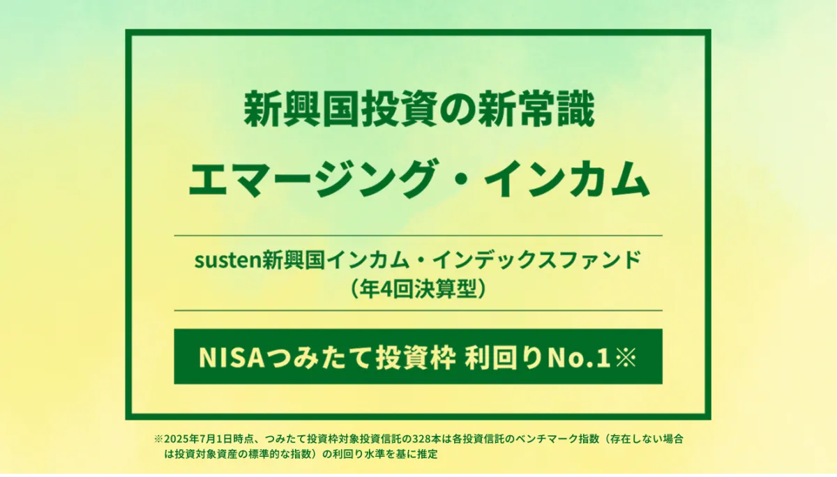 2025年5月19日に運用を開始した「susten新興国インカム・インデックスファンド(年4回決算型)」は、初めての分配金が110円と設定されました。このファンドは、金融庁の規定であるNISAつみたて投資枠に完全に適応しており、年4回決算という特性がちらりとした安定性を兼ね備えています。
