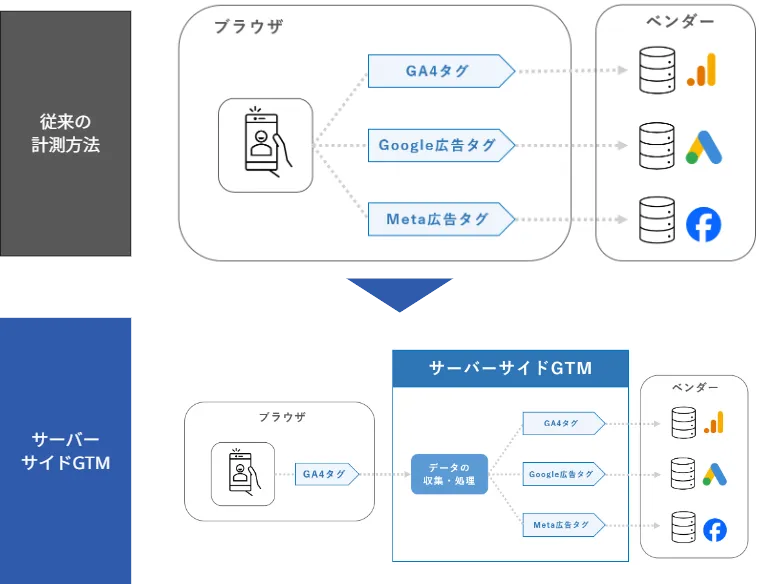 ブラウザのアドブロッカーやITPなどの影響で、これまでの方法でのデータ計測が難しくなっています。sGTMを使うことで、より正確なデータを取得できる可能性が高まります。