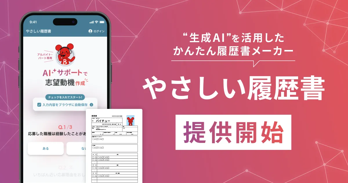 ディップ株式会社が運営するアルバイト・パート求人サイト「バイトル」は、求職者が履歴書を簡単に作成できる新機能「やさしい履歴書」を発表しました。この機能は、生成AIを活用して求職者の労力を軽減し、最短5分での履歴書作成を実現しています。