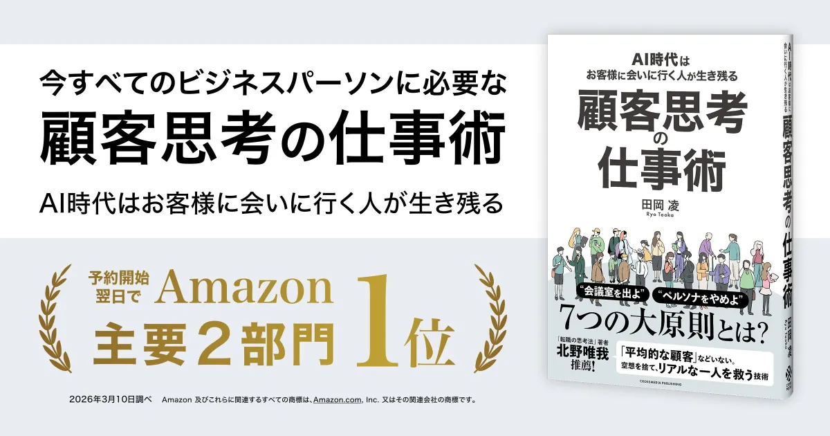 2026年3月19日、suswork株式会社の代表取締役である田岡凌氏が著した新刊『顧客思考の仕事術 AI時代はお客様に会いに行く人が生き残る』が全国の書店およびネット書店で発売されます。すでにAmazonにおいては、営業やビジネスマナーのカテゴリでのランキング1位を達成しており、注目度はもはや言うまでもありません。