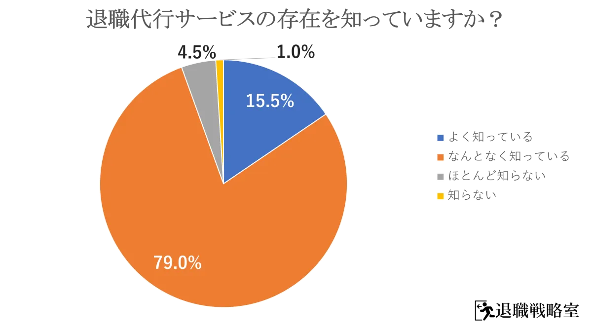 調査によると、退職代行サービスを「よく知っている」と答えたのは15.5%、また「なんとなく知っている」と答えた人を合わせると、94.5%が情報を得ていることが分かりました。