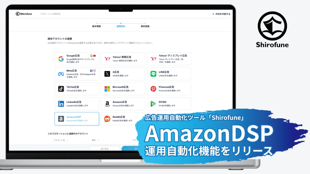 株式会社Shirofuneが開発した広告運用自動化ツール「Shirofune」が、新たにAmazon DSP(Demand-Side Platform)の運用自動化機能をリリースしました。これにより、Amazonの膨大なデータを活用し、商品購入の可能性が高い顧客をターゲットにした広告配信が、これまで以上に簡単に行えるようになります。