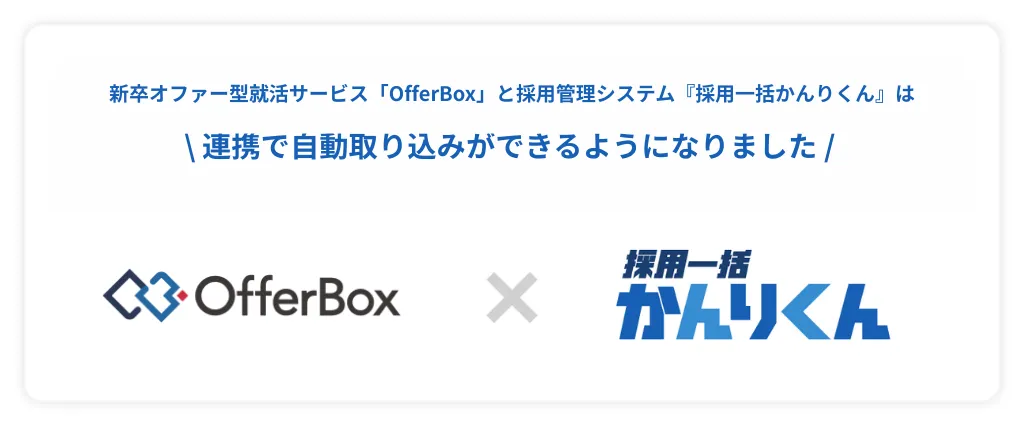 この連携により、OfferBoxからエントリーした候補者は、自動的に「採用一括かんりくん」に登録されます。また、候補者がOfferBoxで予約したイベント(説明会や個別面談など)の日程も自動的に管理できるため、企業は候補者情報の把握や対応が容易になります。