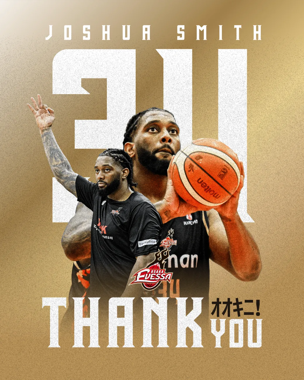 大阪エヴェッサにおける新たなスタートとともに、ジョシュア・スミス選手の今後の活躍を応援したいです。