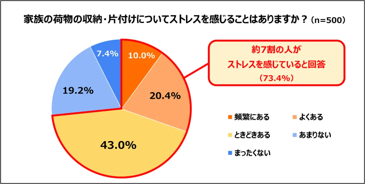 直近の調査によると、日本の家庭で荷物の収納や整理におけるストレスは非常に高いことが明らかになりました。特に、季節ごとに必要な衣類の管理が大きな負担となっています。調査を行ったエリアリンク株式会社が提供するデータによると、全体の73.4%が「ストレスを感じている」と回答しています。