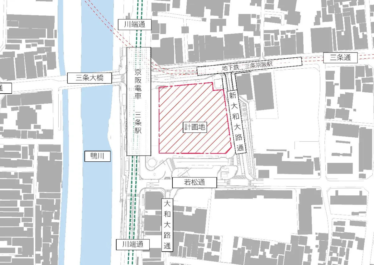 プロジェクトの名称は(仮称)「三条駅周辺プロジェクト」。所在地は京都市東山区大和大路通三条下る東側大黒町139番1他、敷地面積は約6,400㎡となっています。事業主である京阪ホールディングスは、主に商業施設やホテルの導入を計画しています。これらの施設は、観光客はもちろん地元住民にも大きな利便性を提供することになるでしょう。