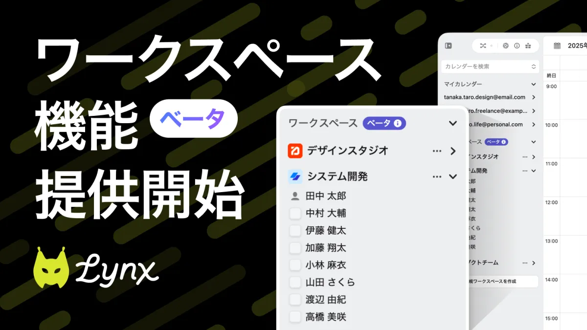 Lynxの目指すところは、日程調整にかかる時間を完全になくし、メンバー同士が自然にスケジュールを合わせる世界です。「ワークスペース機能」はその第一歩として機能し、今後もユーザーの声を反映させながら進化していく予定です。
