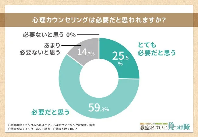 さらに、93.1%の人が今後心理カウンセラーの需要が高まると予想しています。これは、心の健康を支えるために、より多くの人々が専門的なサポートを必要とするためです。特に、複雑化した現代社会においては、個人の悩みに寄り添うカウンセリングが重要です。