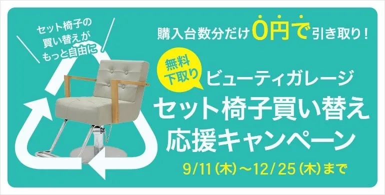 プロ向けの美容商材を扱うビューティガレージが、「セット椅子買い替え応援キャンペーン」を開始しました。これは、美容サロンや関連業者が新しいセット椅子を購入する際に、不要になった旧式のセット椅子を無料で引き取ってくれるサービスです。