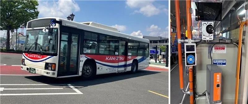 今回の実証実験では、関越交通の一部路線バスにおいてGPSとタブレットを設置し、リアルタイムの位置情報を取得・処理します。乗客への案内は、タブレットを通じて合成音声と画面表示の両方で行います。加えて、顔認識AIカメラも搭載され、乗客の乗降情報を自動で取得するシステムも導入される予定です。