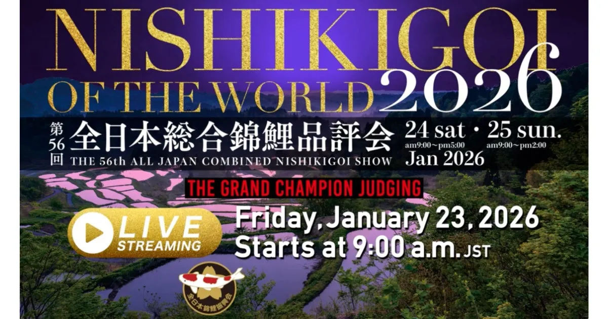 次回の第56回全日本総合錦鯉品評会は、2026年1月24日(土)と25日(日)に東京流通センターで行われます。主催団体は全日本錦鯉振興会で、農林水産省や東京都、新潟県が後援しています。国内外の愛好者が集うこの大会では、出品される錦鯉がその美しさを競い合うのです。