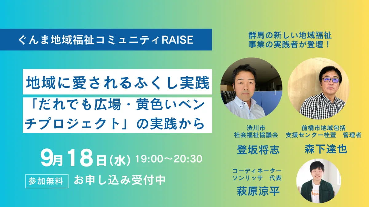 群馬県内で地域福祉に関心がある方々に向けたオンラインイベントが、9月18日(水)に開催されます。このイベントは、ぐんま地域福祉コミュニティRAISE(ライズ)が主催するもので、地域づくりや多世代交流に関心を持つ人々が集い、学び合うための貴重な機会となります。参加は事前申し込みが必要で、締め切りは9月17日(火)です。