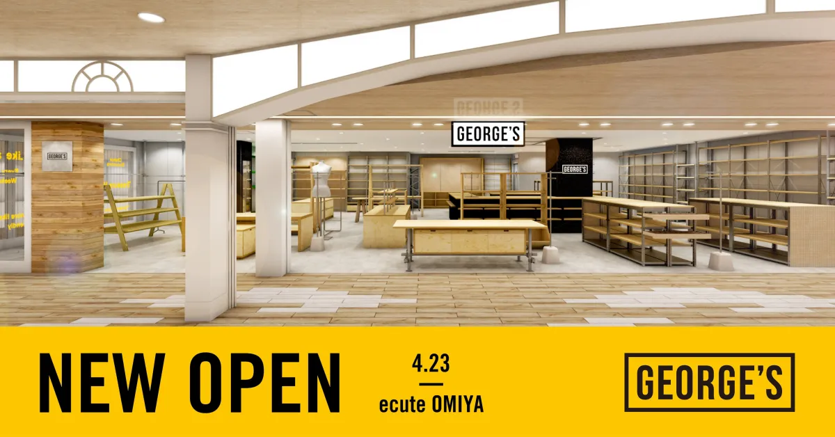 埼玉県さいたま市のエキュート大宮に、2026年4月23日(木)に新たにオープンするジェネラルストア「GEORGE’S」についてご紹介します。ファッションを通じて日常を楽しくする、「Play fashion!」をミッションに掲げるアンドエスティHDグループが手掛けるこの店舗は、デイリーに使える雑貨や洋服、特別な誰かに贈りたくなるアイテムが豊富に揃っています。