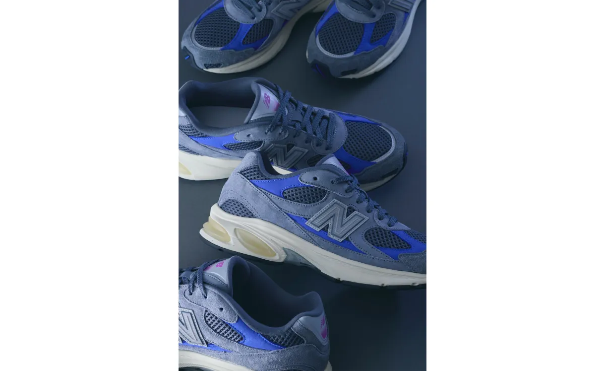 「ABZORB 2010」は、ニューバランスのレトロランニングシューズのシルエットをモデルにしており、ダークグレーのスエードとメッシュを基にしたデザインが特徴です。ロイヤルブルーのパネルに加え、タン部分にはピンクからパープルへの美しいグラデーションが施されています。この配色は、友情を象徴する記憶や感情を喚起させるものです。さらに、スエードと高通気性メッシュを組み合わせることで、クラシカルな魅力を維持しつつ、美しいデザインと快適な履き心地を実現しています。