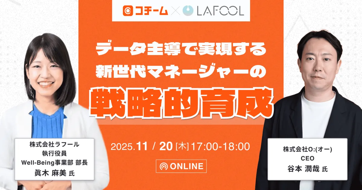 株式会社ラフールが主催するオンラインセミナー『データ主導で実現する新世代マネージャーの戦略的育成』が、2025年11月20日(木)に開催されます。このセミナーは、従業員の意見を反映したマネジメント手法の重要性や、効果的なKPI設定・運用について学べる内容です。