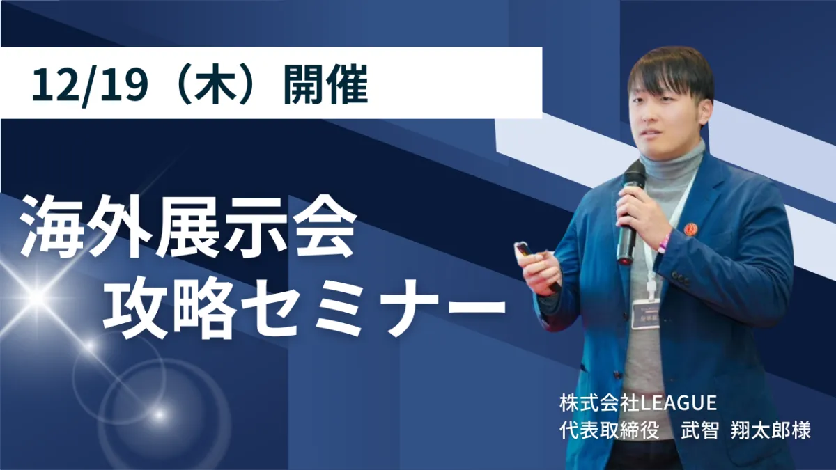 この度、2025年1月にラスベガスで開催されるCES(Consumer Electronics Show)に出展予定の講師、武智翔太郎氏をお招きし、海外展示会を上手に活用して利益を最大化するためのノウハウを伝授いただきます。本セミナーでは、初心者でもわかりやすい内容となっており、海外貿易の基礎知識や成功事例、さらには独占代理店契約を取得するための交渉術まで幅広く解説します。