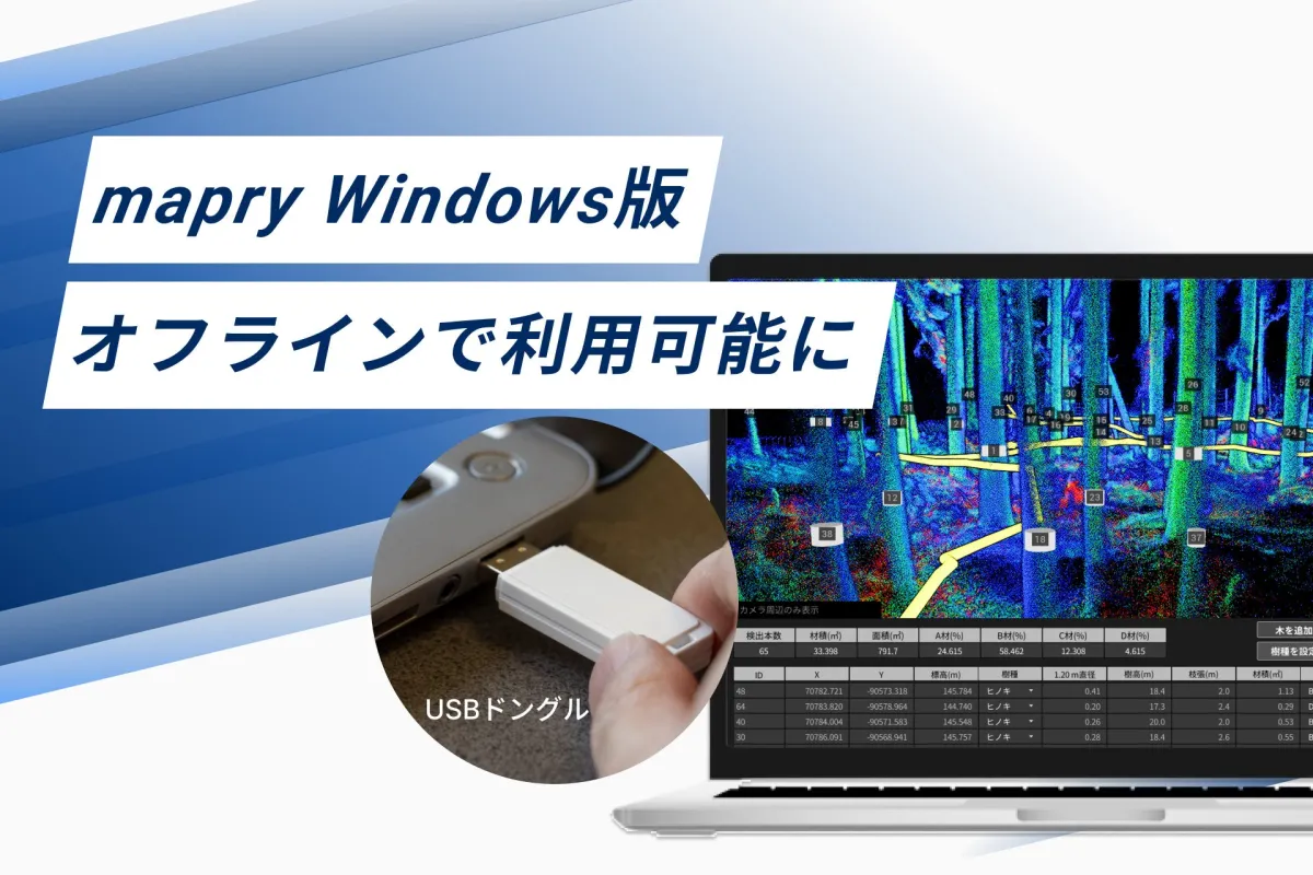 兵庫県丹波市に本社を置く株式会社マプリィが、3D点群データの解析・活用ソフトである「mapry Windows版」に新たにUSBドングル版を追加しました。この新製品は、ネットワーク環境に頼らずに使用できることが最大の特徴です。特にセキュリティに厳しい自治体や企業、さらには通信環境の整っていない現場などでの導入が期待されています。