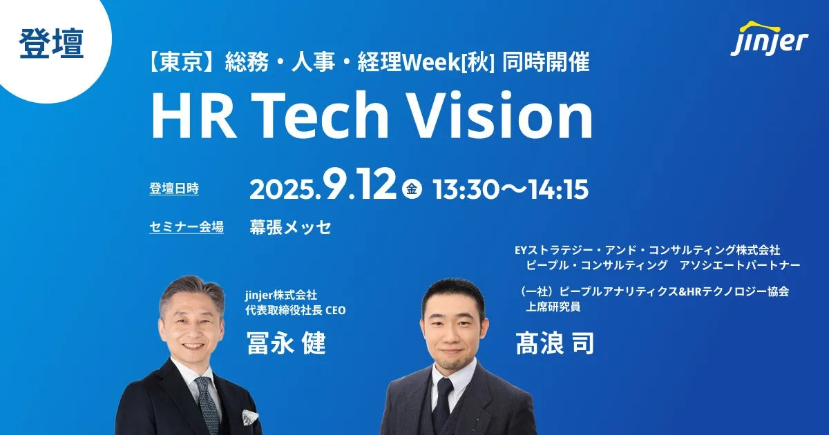 クラウド型人事労務システム「ジンジャー」を提供するjinjer株式会社の冨永健代表が、2025年9月10日から12日まで開催される「カイシャのミライ カレッジ 2025 Tokyo Autumn」において、セミナー「HR Tech Vision」に登壇します。