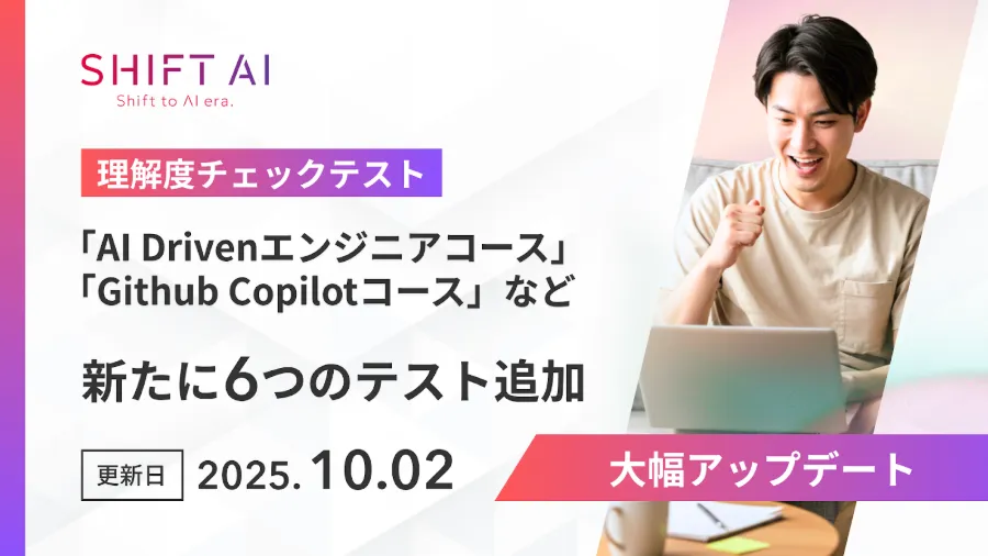 株式会社SHIFT AIは、2023年8月に法人向けリスキリングサービス「SHIFT AI for Biz」のオンライン学習プラットフォームに、理解度を測るための「理解度チェックテスト」機能を新たに追加した。この機能の導入により、受講者はコース終了後すぐに自らの学習成果を確認できるようになった。