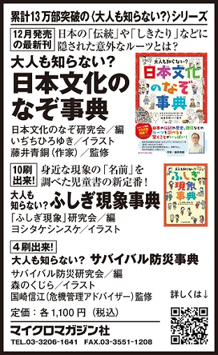 新刊のリリースにより、さらに多様なテーマが提供される「大人も知らない?」シリーズ。これからも、子どもたちの探求心を引き立てる本を通じて、彼らが新しい世界を発見できることを期待しています。早速、12月に発売されるこれらの書籍を手に取ってみてはいかがでしょうか。