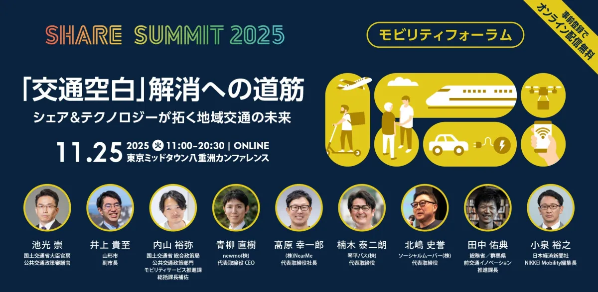 SHARE SUMMIT 2025公式サイトをご覧ください。参加者が新たな交通インフラの未来を議論し、意見を交換する場となるでしょう。