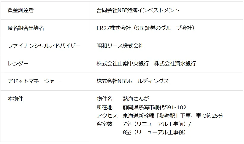 NBIホールディングスとSBI証券による新たな旅館ファンド