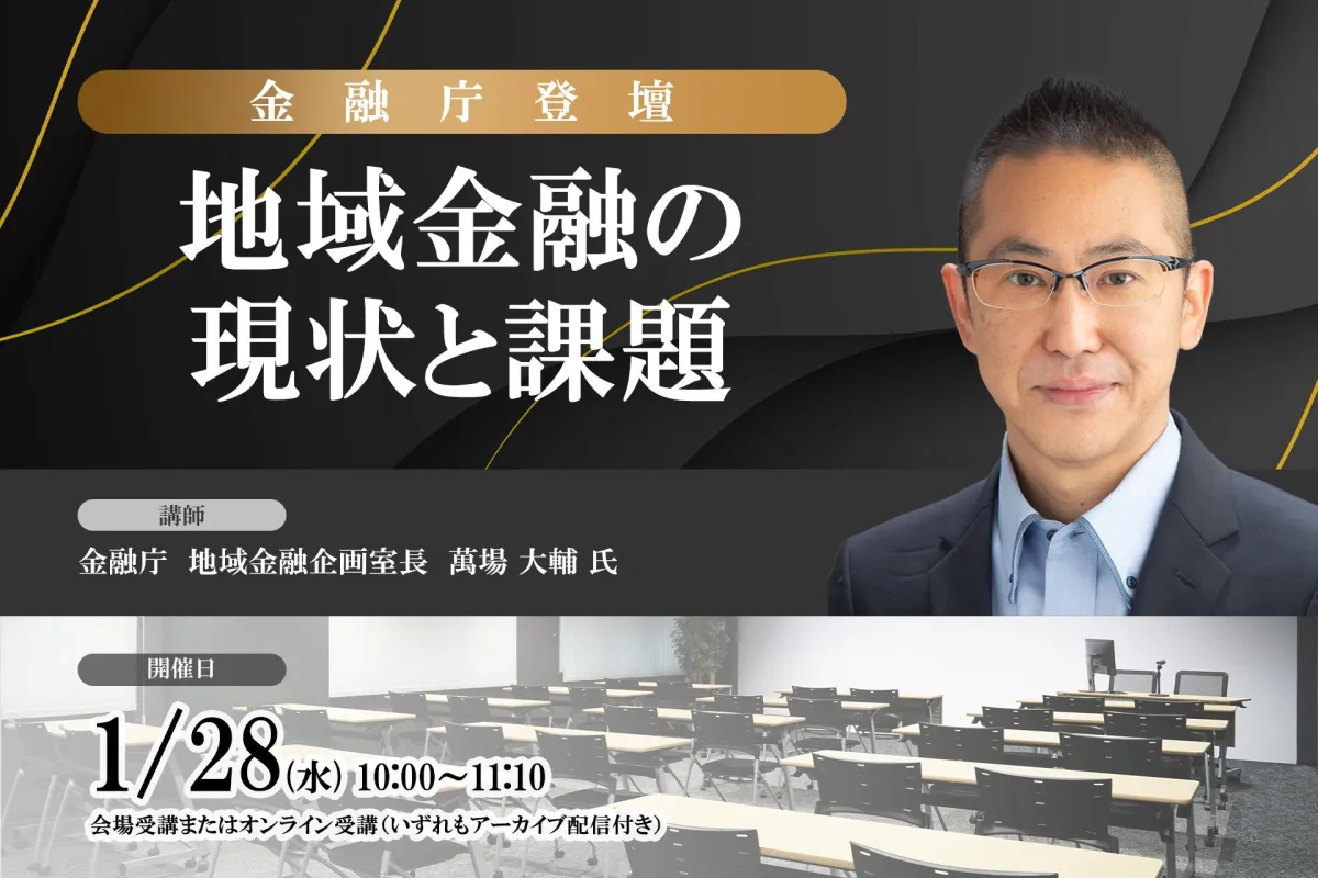 2026年1月28日、株式会社セミナーインフォが主催するセミナー「地域金融の現状と課題」が実施されます。本イベントは、地域金融の現状を改めて見つめ直し、今後の課題を掘り下げることを目的としています。金融庁の地域金融企画室長である萬場大輔氏が講師を務め、地域企業の価値向上や地域課題の解決に向けた取組みについてお話しします。