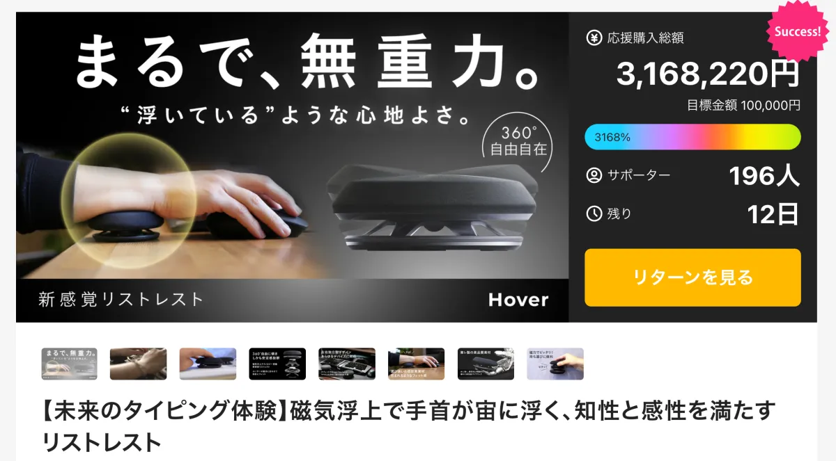 Makuakeは、革新的なアイデアを持つ商品やプロジェクトを応援する購入サービスです。全国の事業者と連携し、国内外の流通パートナーとも協力して、多くのビジネスの支持を集めています。Hoverという商品の登場により、さらなる快適な作業環境が実現されることでしょう。