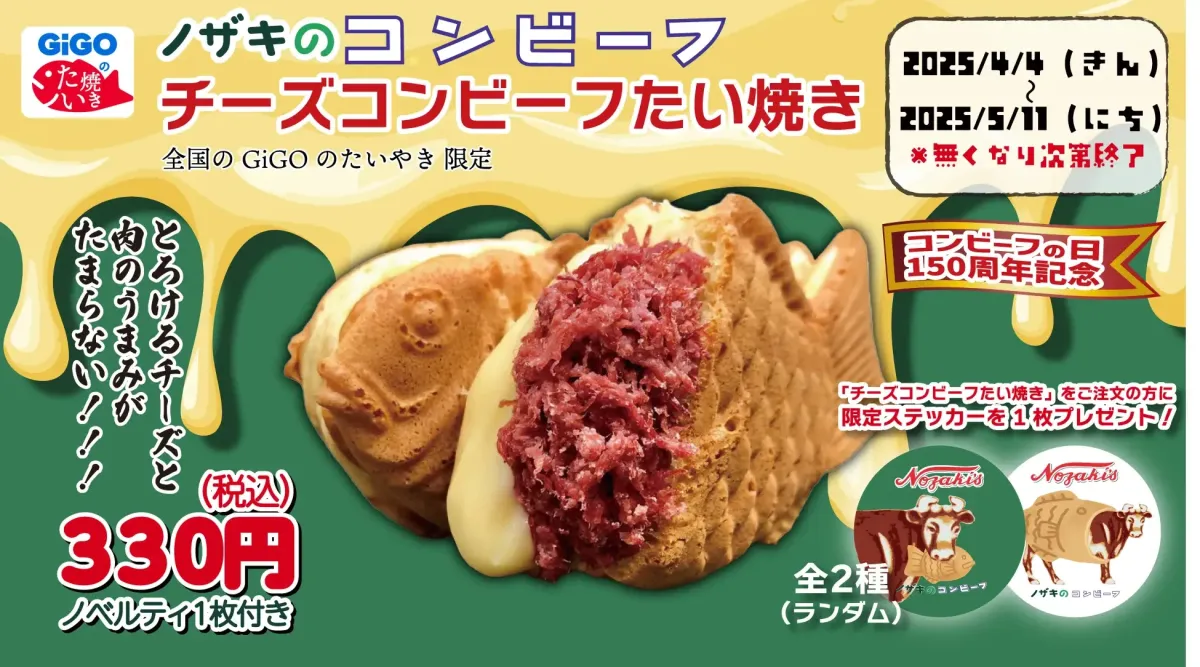 さらに、GiGOのたい焼きに「コンビーフたい焼き」が登場します。ノベルティ付きのこの商品は2025年4月4日から5月11日まで販売され、全国の7店舗で手に入る予定です。特別なノベルティも数量限定で配布されるので、早めの来店がおすすめです。