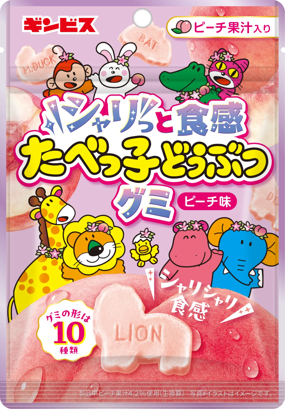 新しい食感と味わいを楽しむことができる「シャリっと食感たべっ子どうぶつグミピーチ味」。期間限定のこの商品をぜひお見逃しなく!