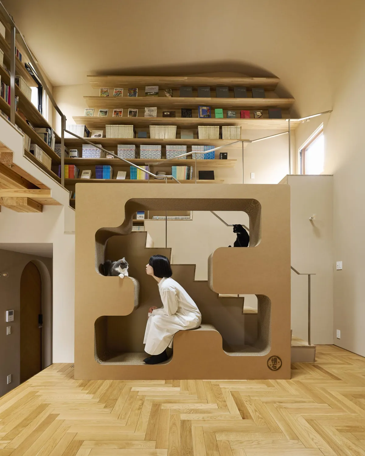 山之内淡氏は、「猫と人が共に過ごす幸福感を感じられるデザイン」を意識して設計しました。シンプルに見える作品ながら、内部構造においては高度な技術が使われています。猫が楽しく遊び、飼い主もその時間を楽しめる、そんな空間を目指して取り組んでいます。