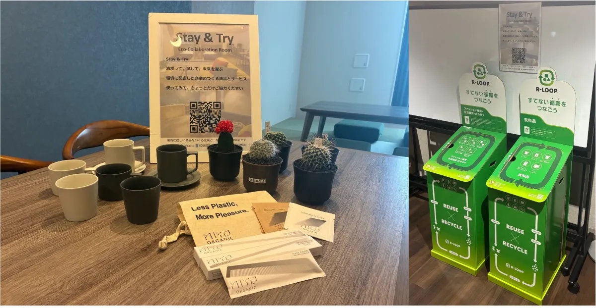- - 循環型回収ボックス「R-LOOP」:宿泊者が衣料品や雑貨を回収し、資源循環を体感できる仕組み。