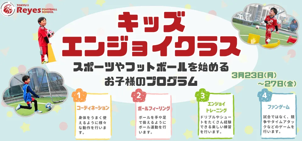 東急Sレイエス フットボールスクール池袋が提供する新しいプログラム『キッズエンジョイクラス』が、これからスポーツやフットボールに親しむ子どもたちに向けて始まります。このクラスは、参加者が楽しみながら基礎的な運動技術を身につけることを目的としており、身体の使い方を学び、ボールの扱いに慣れることができます。