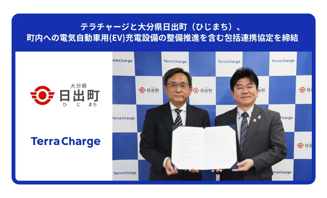 テラチャージは、日本全国でEV充電インフラを拡充する活動を展開しており、特に地域への初期投資を無料で提供し、持続可能な移動手段を実現しています。このたびの協定は、日出町が目指す脱炭素社会とテラチャージの理念が合致した結果と言えます。