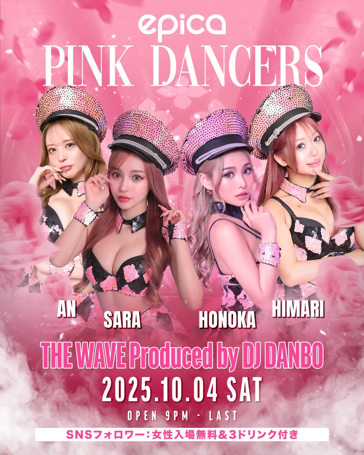 「PINK DANCERS」は、進化系クラブ「THE PINK」に所属し、東京、大阪、京都に店舗を展開しています。メンバーはそれぞれの個性と才能を生かしており、以下の4名がこの特別な日を演出します。
