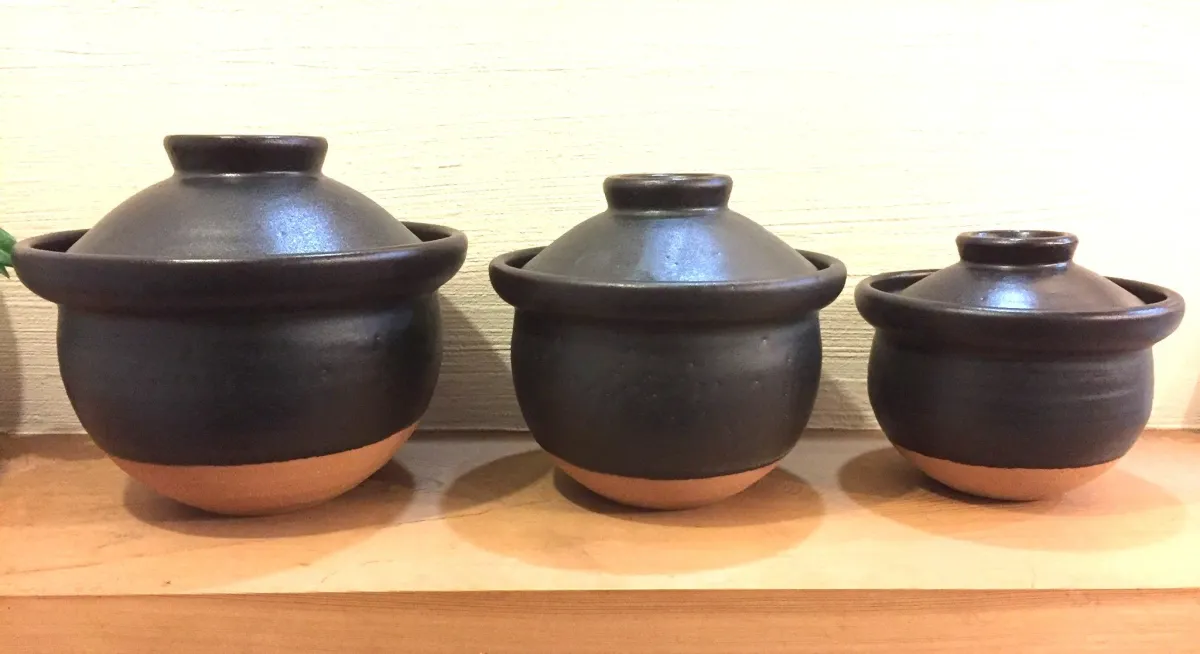 ごはん釜だけでなく、様々な種類の土鍋を揃えています。オーソドックスな土鍋から、煮込み鍋、蒸し鍋、パエリヤ鍋、フライパンまで、全て手作りでデザインはオリジナルです。