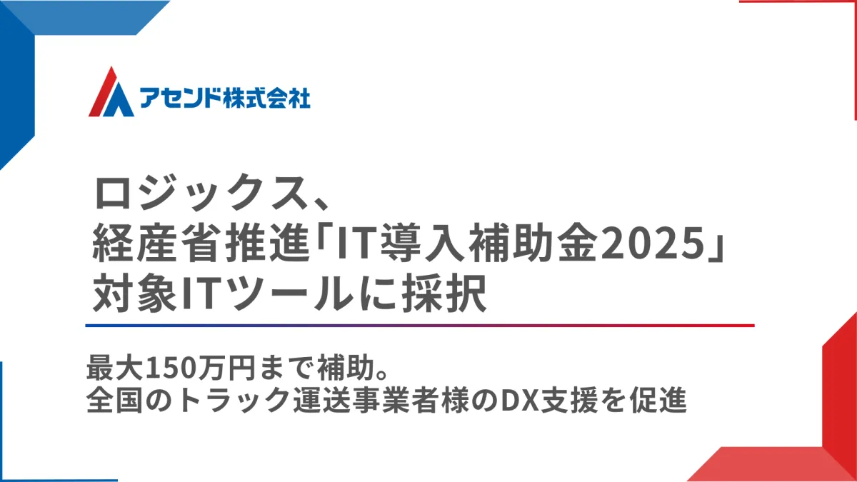 アセンド株式会社(本社:東京都新宿区)は、経済産業省が進める「IT導入補助金2025」の対象として、同社の運送管理システム『ロジックス』が正式に認められたことを発表しました。これにより、運送業界におけるデジタルトランスフォーメーション(DX)がより一層促進されることが期待されています。
