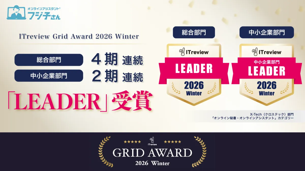 BPOテクノロジー株式会社が展開するオンラインアシスタント『フジ子さん』が、ITreview Grid Award 2026 Winterにおいて、2部門で最高位「Leader」を受賞しました。この受賞は中小企業部門での2回連続受賞と、総合部門での4回連続受賞という快挙です。心強いパートナーとして位置づけられるこのサービスの魅力を深掘りします。