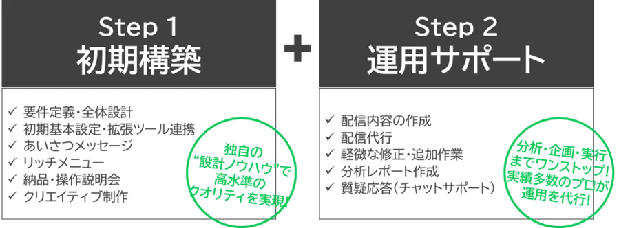 リードプラスの新サービスでは、初期構築と運用サポートを提供します。月額5万円からの低価格で、必要な機能を含むメニューを整えています。具体的な運用ノウハウを持つRevisionとの連携により、高いクオリティのサービスを実現しています。