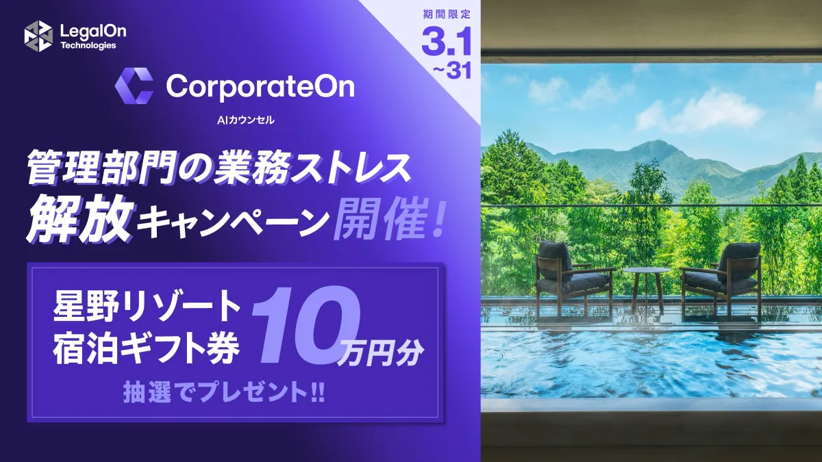 株式会社LegalOn Technologies(以下、LegalOn)が新たに提供するAIカウンセル「CorporateOn」のTV-CM放映を記念して、特別なSNSキャンペーンを開催します。このキャンペーンは、2025年3月1日から31日までの期間中、管理部門の業務ストレスを解放することをテーマにしています。