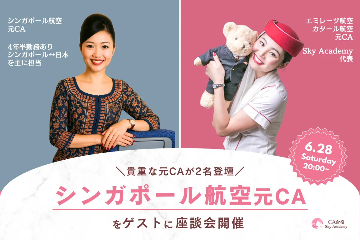 この座談会には、元シンガポール航空のCAと、Sky Academyの代表であり元カタール・エミレーツ航空のCAであるKanaが参加します。彼女は、このイベントのファシリテーターとして、ゲストと一緒に貴重なお話を聞き出します。