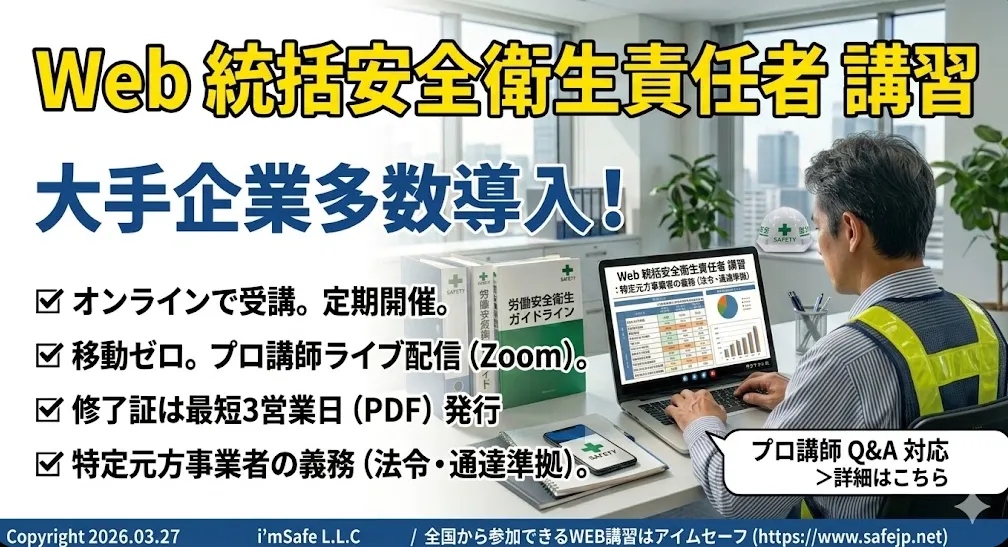 アイムセーフ合同会社が運営するオンライン講習「統括安全衛生責任者講習」の5月スケジュールが発表されました。この講習は、労働者の安全と健康を守るために欠かせない教育であり、参加することで現場での安全性向上が期待されます。