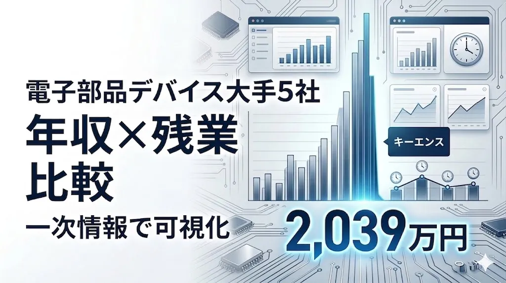 株式会社エフペリが提供する「Career Reveal(キャリア・リビール)」の最新調査により、電子部品デバイス業界の中核を担う五つの大手企業、すなわちキーエンス、TDK、村田製作所、ニデック、京セラの年収と残業時間が明らかになりました。この報告では、特に専門的データに基づいて企業ごとの報酬および労働条件について詳しく掘り下げます。