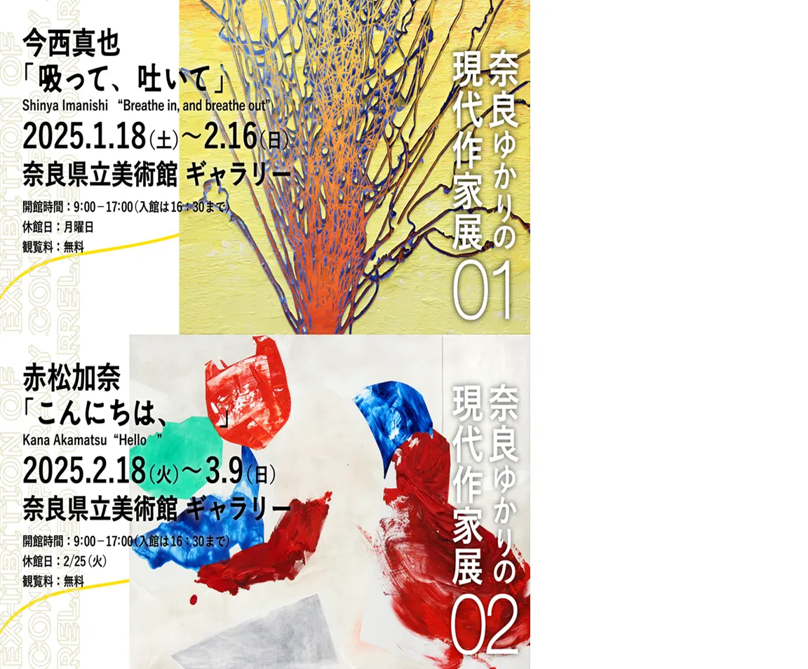 本展では、奈良に生まれ育ったふたりの現代作家、今西真也と赤松加奈を取り上げます。彼らにとって、本展は地元公立美術館での初めての展覧会であり、その意味でも特別なものとなります。今西と赤松はそれぞれ独自の視点でアートを表現しており、観覧者に新たな発見を提供すること間違いなしです。