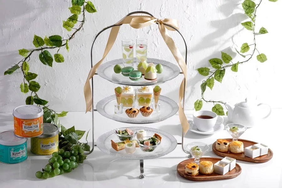 このアフタヌーンティーはシャインマスカットの卓越した風味を楽しめる、特別な体験です。夏の訪れを感じながら、美味しいスイーツと素敵な空間で、優雅な時間をお過ごしください。
