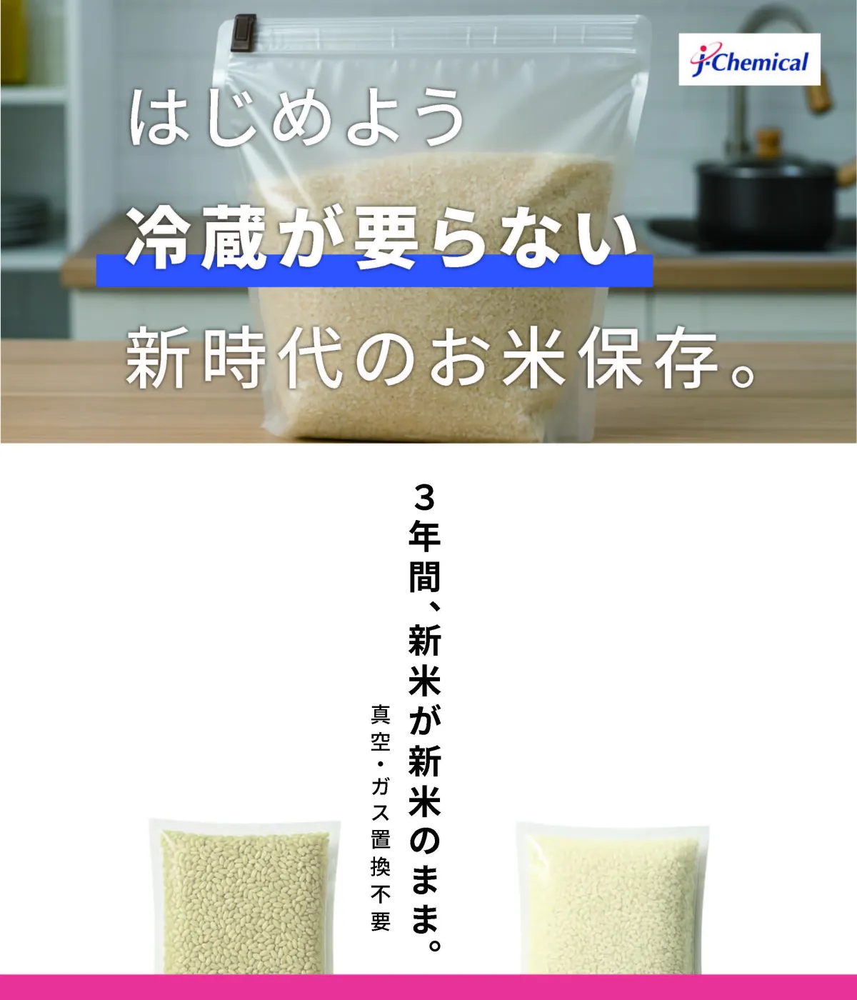 2025年10月6日、ジェイケミカル株式会社が新たな米の保存方法を提案する「プロガードライスキープ」を発売します。この製品は、独自の技術により新米の水分を最大3年間保持し、真空や乾燥剤なしでの常温保存を可能にしました。これにより、これまでの保存方法に対する常識を覆す画期的な商品が登場したのです。